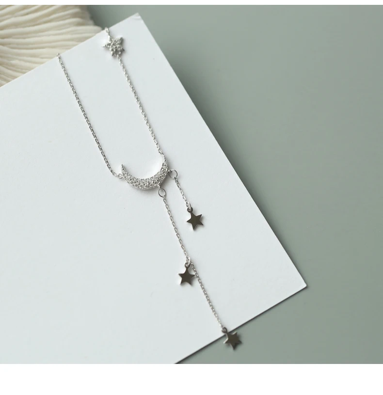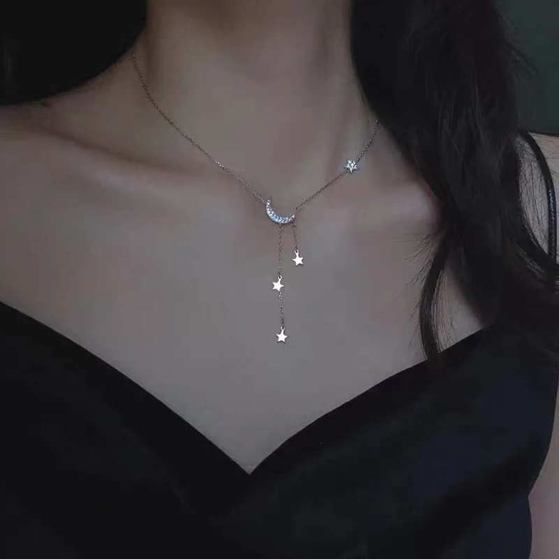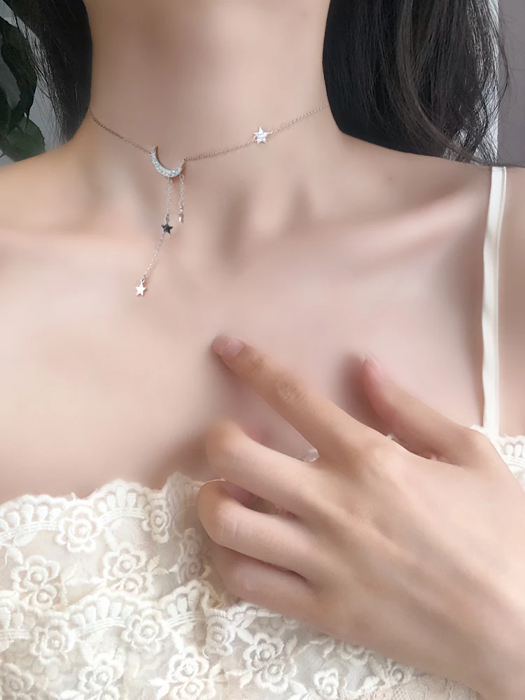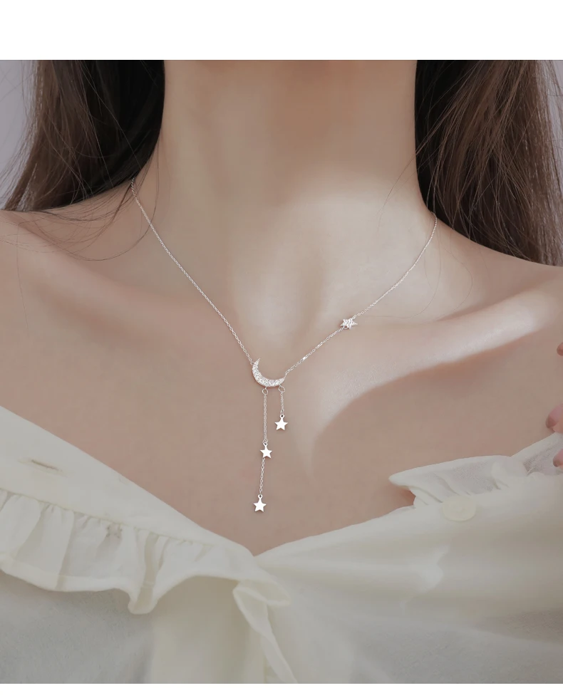 Модное ожерелье из стерлингового серебра 925 пробы с кисточками в виде звезд и Луны, цепочка для ключиц для женщин, колье, модное ювелирное изделие, подвеска с бриллиантом