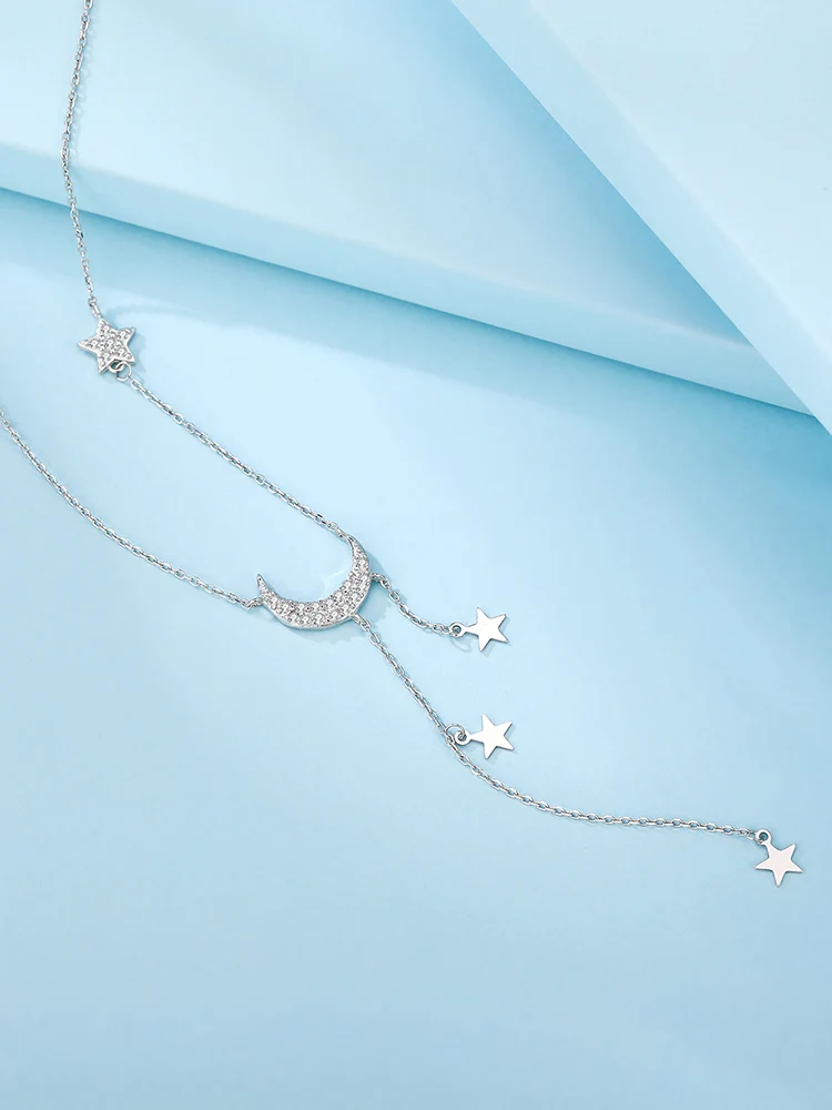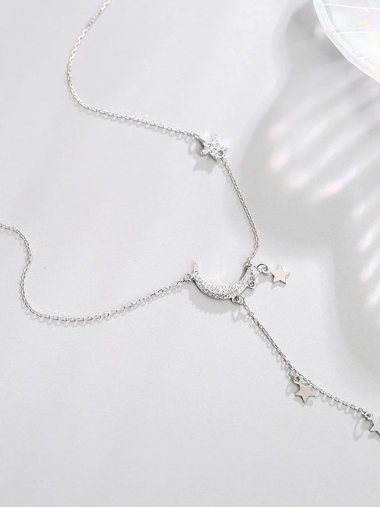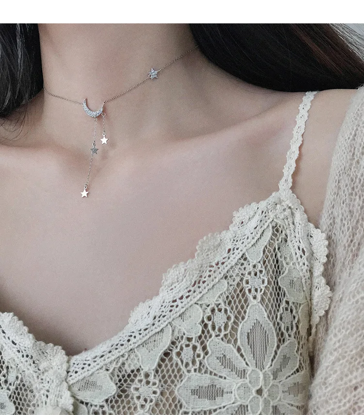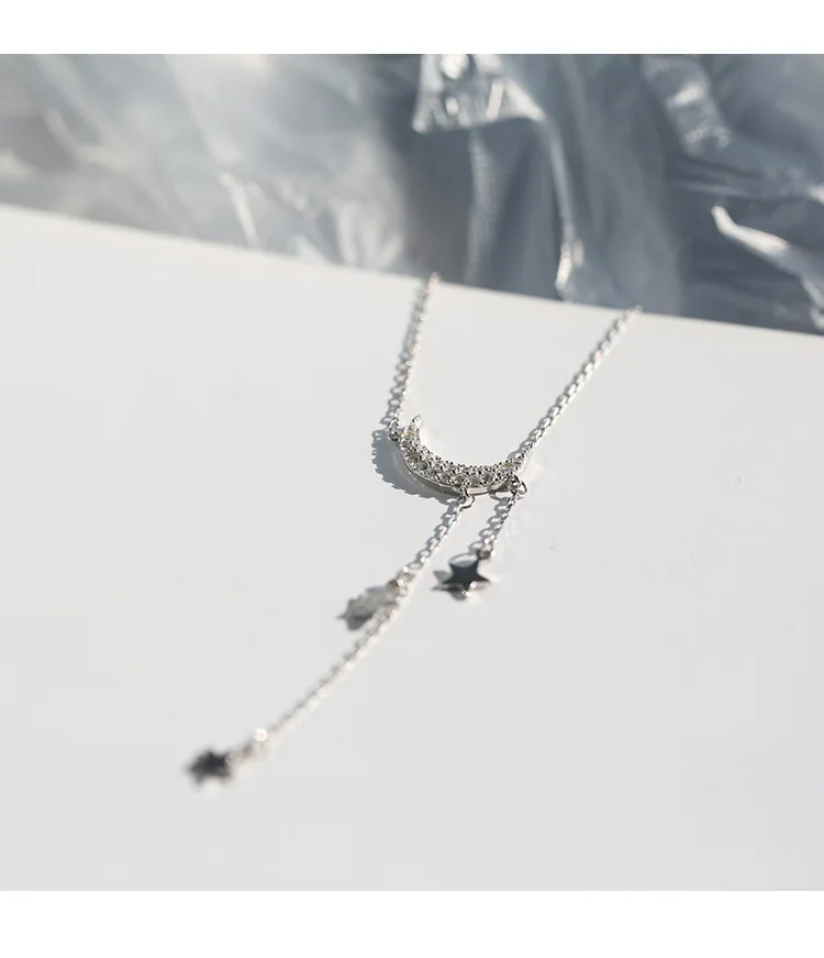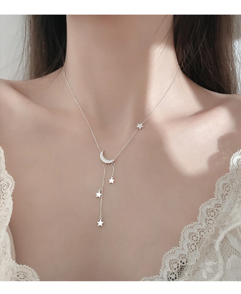 Модное ожерелье из стерлингового серебра 925 пробы с кисточками в виде звезд и Луны, цепочка для ключиц для женщин, колье, модное ювелирное изделие, подвеска с бриллиантом
