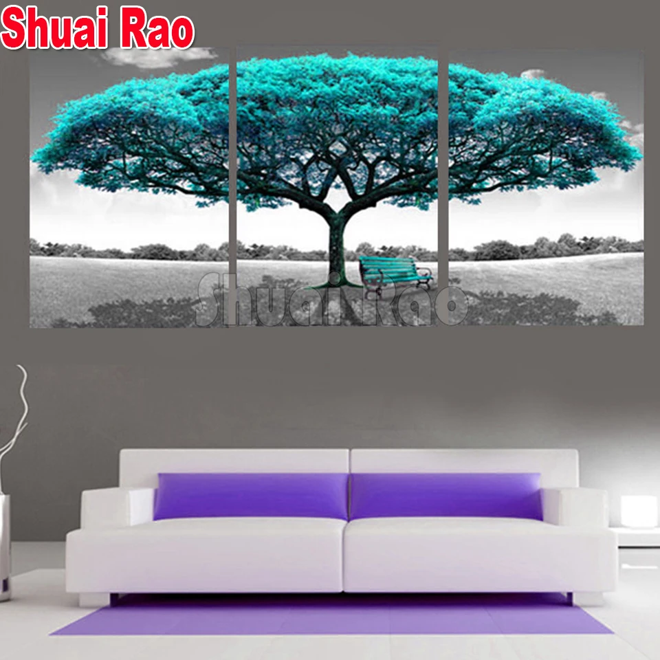 3 шт. синяя большая «дерево» Алмазная картина Триптих Алмазная вышивка Мозаичный набор картины стула полный квадрат/круглая дрель,