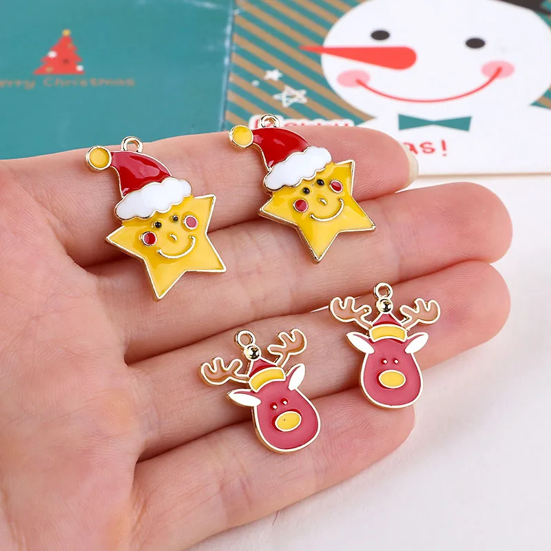 10 шт.упак. новые рождественские обереги амулеты подвески эмаль браслет вечерние дома металлические ремесленные украшения елки в виде носка, аксессуары для изготовления украшений своими руками