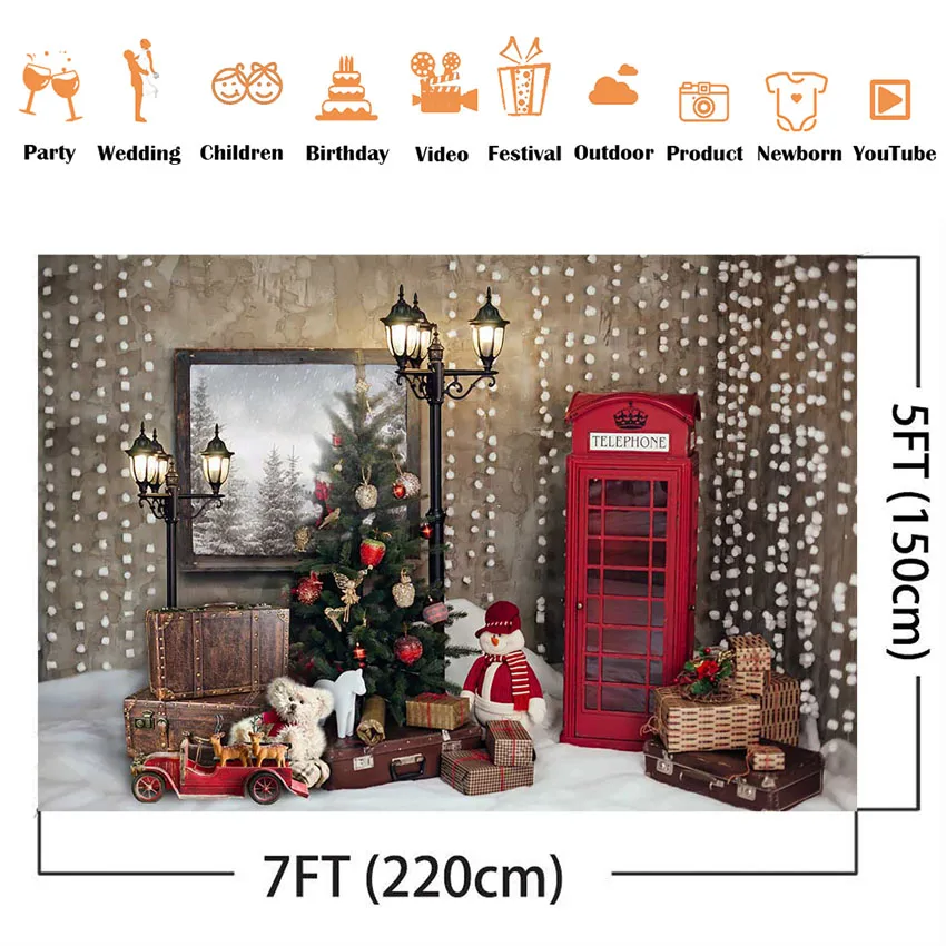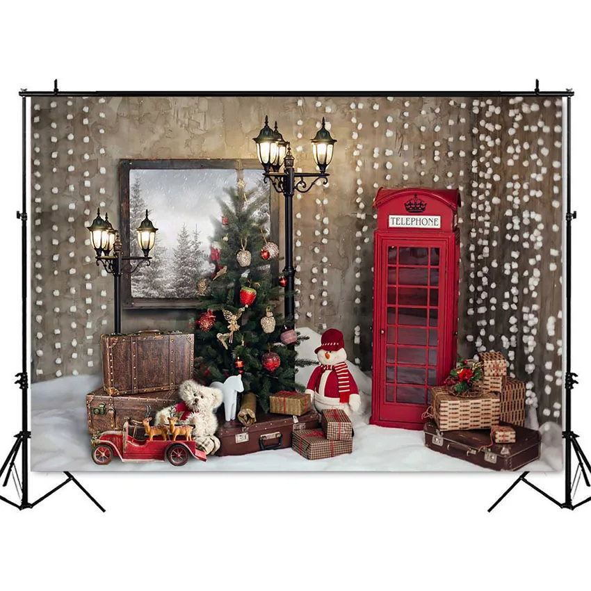 Зимние счастливого рождественских праздников, Photo Booth фон новорожденные дети портретный фон для фотосъемки Рождество фотосессия светильники в виде игрушек