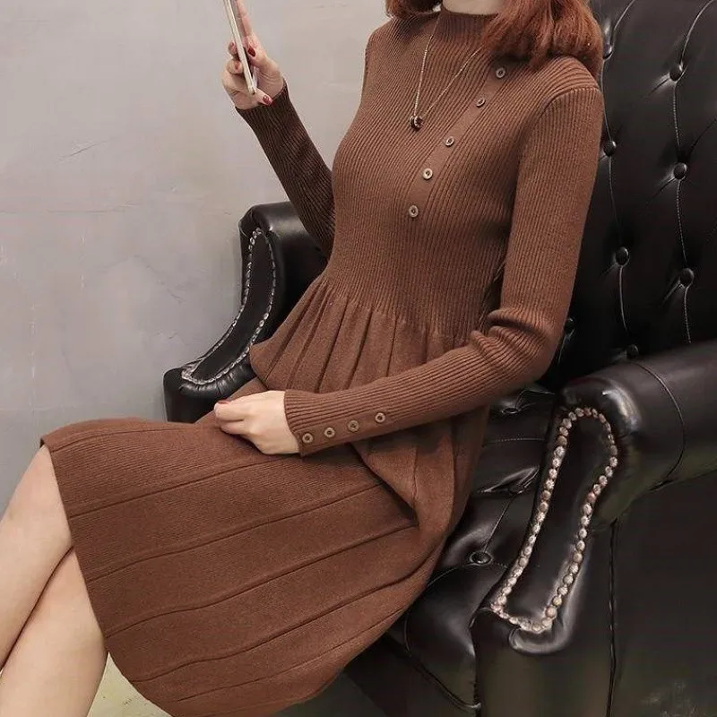 Женское трикотажное платье-свитер, длинное вязаное платье-пуловер, Осень-зима 2020