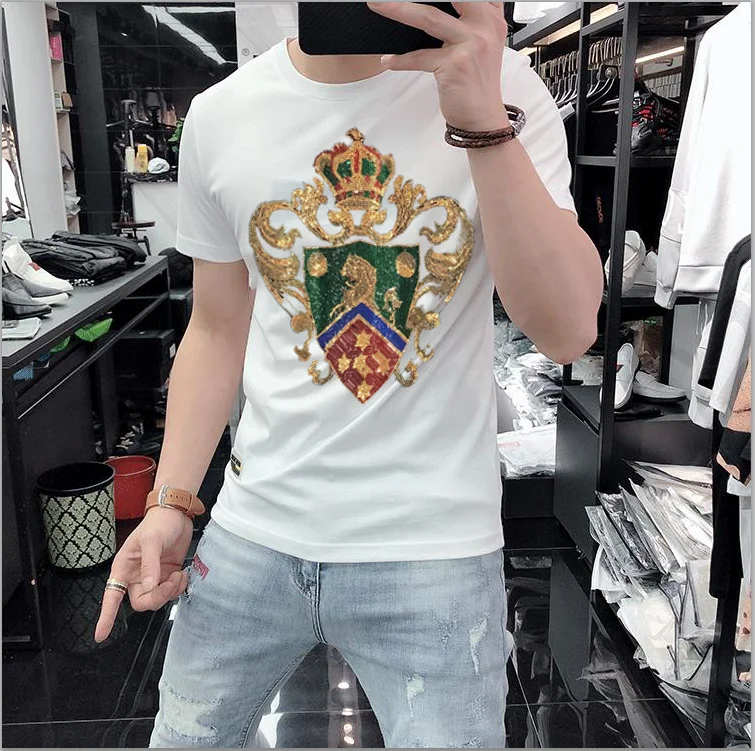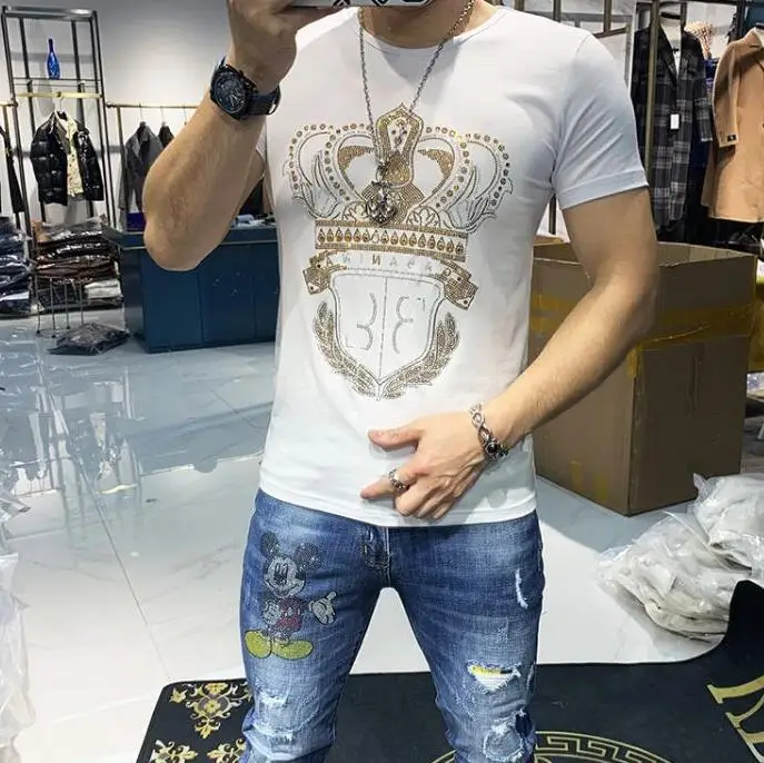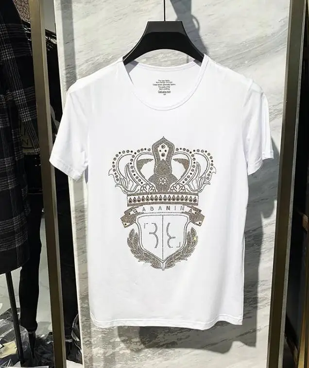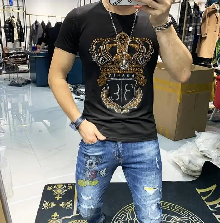 2021 Мужская модная повседневная футболка Стразы с коротким рукавом...