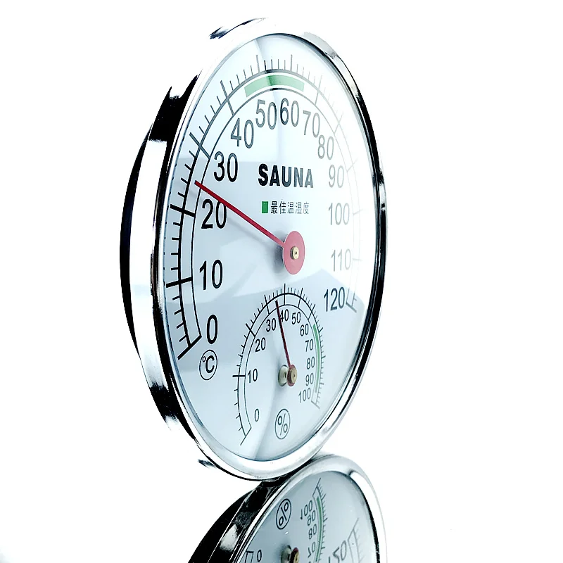 Металлический материал, высокая чувствительность, своевременное преобразование температуры, и продукт может отображать большой диапазон температур. Продукт представляет собой термометр двойного назначения, который может отображать влажность и температуру. Температура в сауне четко отмечена в эксклюзивной среде, такой как сауна. Это универсальный термометр, специально разработанный для сауны.
