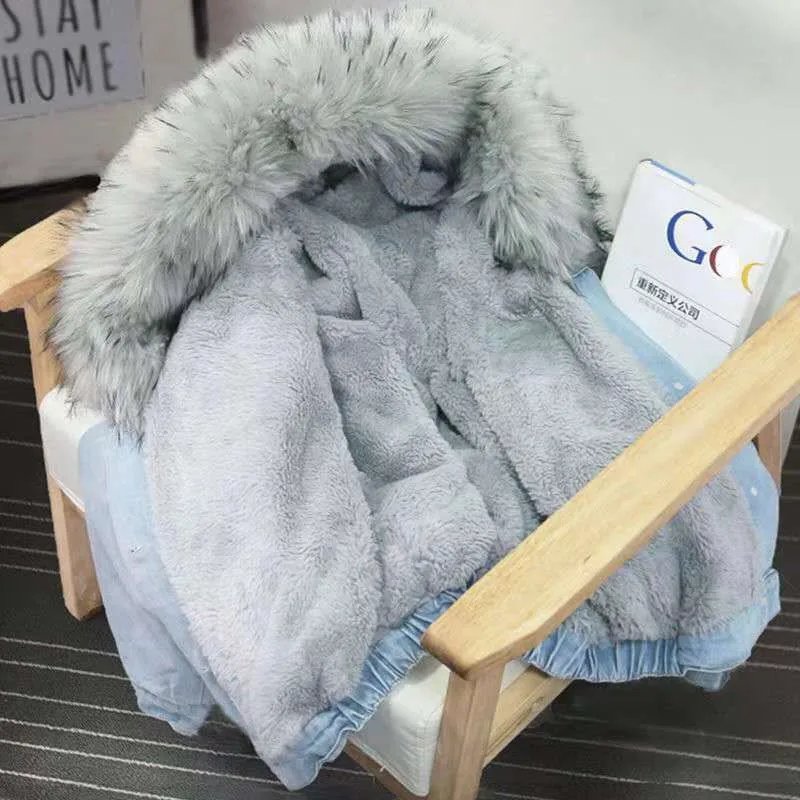 Куртка женская джинсовая, осенне-зимняя, теплая, пушистая, с меховы...