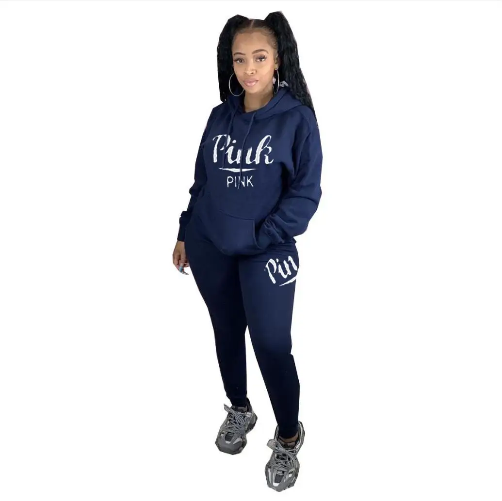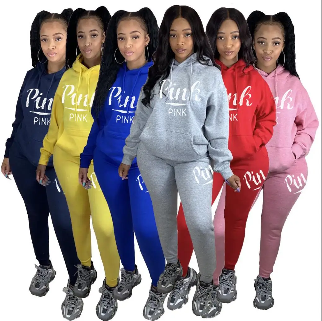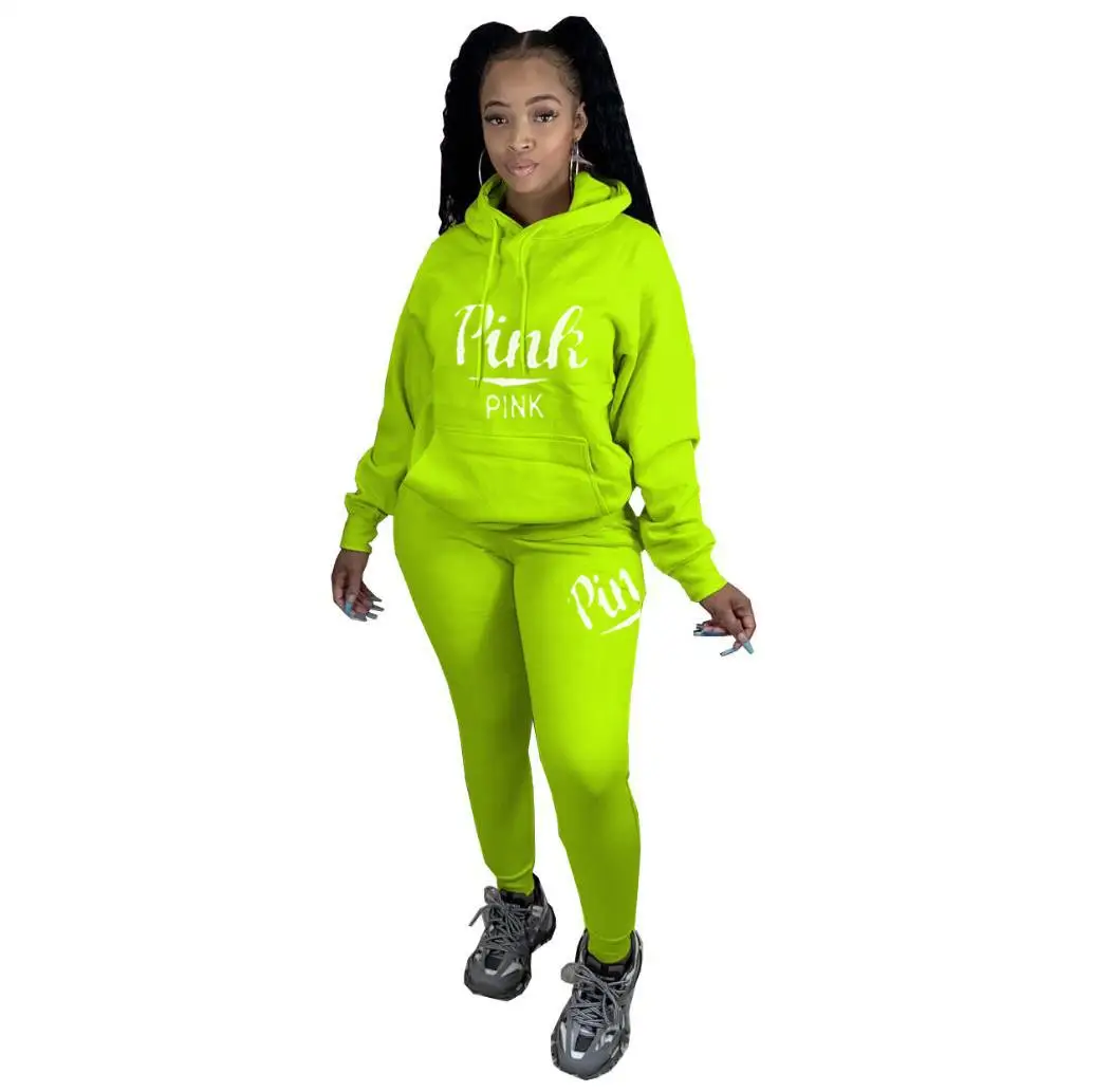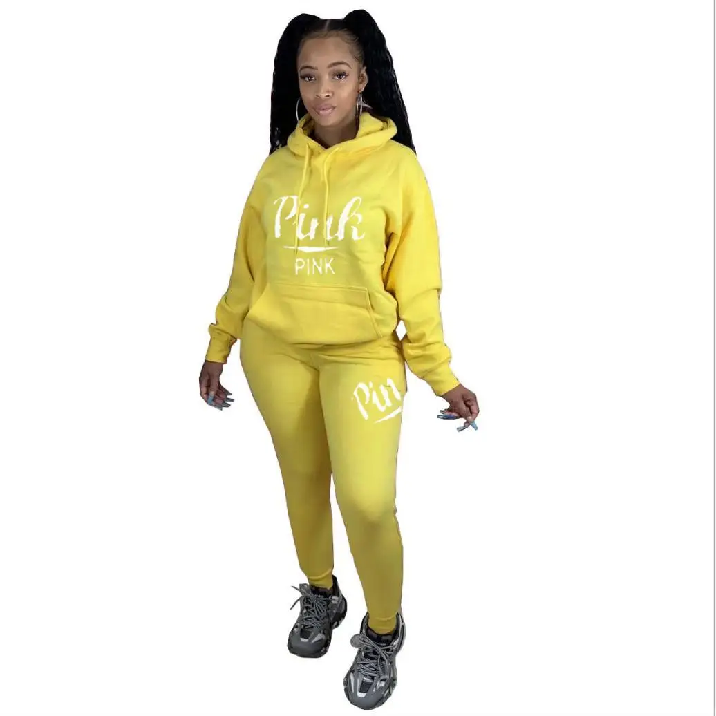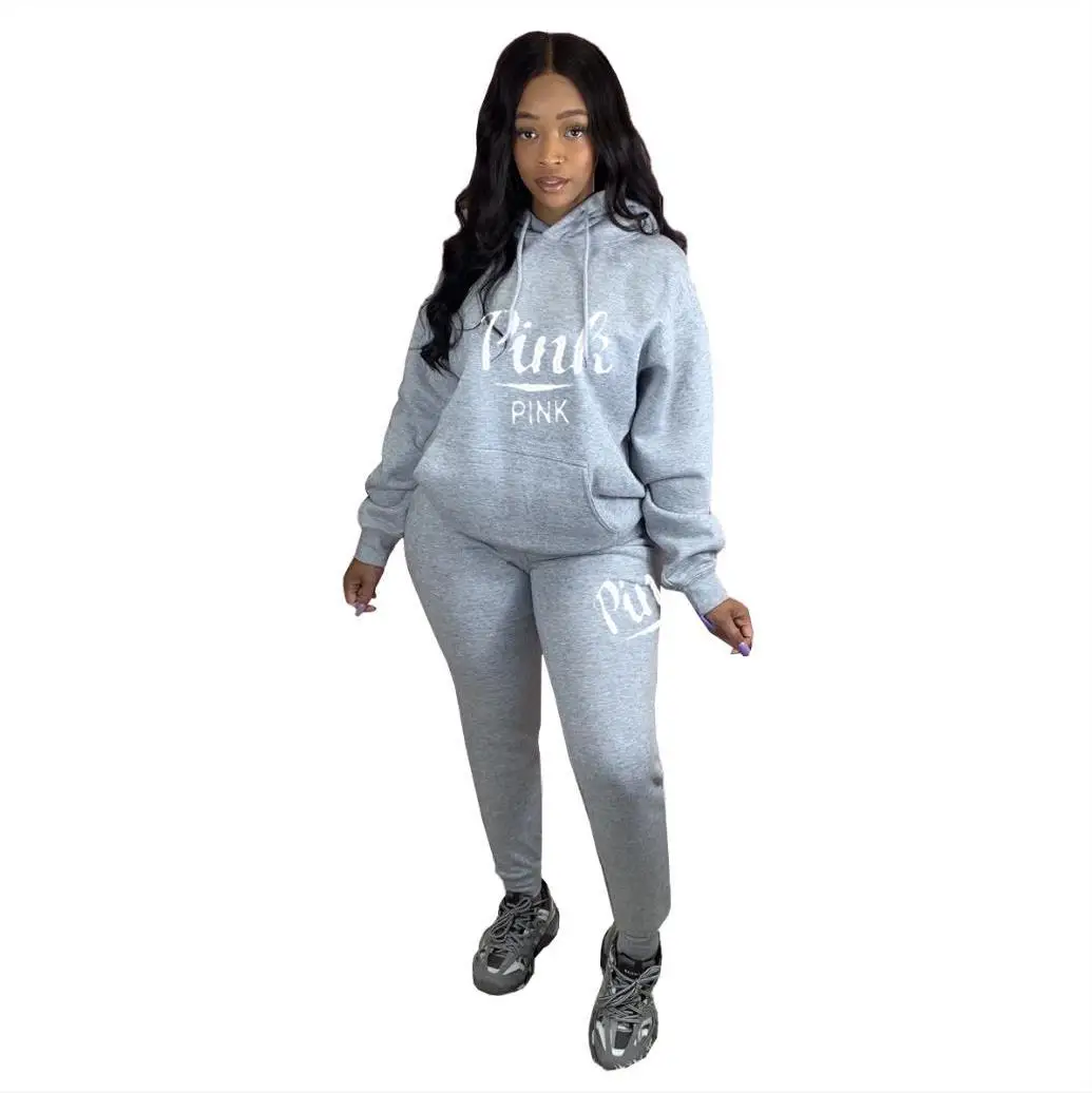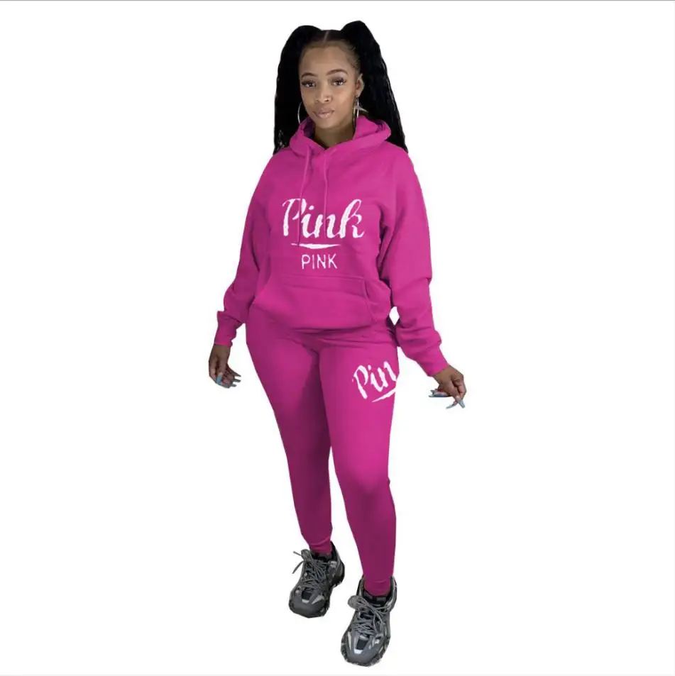 Спортивный Повседневный комплект из 2 предметов, розовый спортивный костюм с буквенным принтом для женщин, Осень-зима, уличная одежда из двух предметов, набор для бегунов на молнии, спортивные костюмы