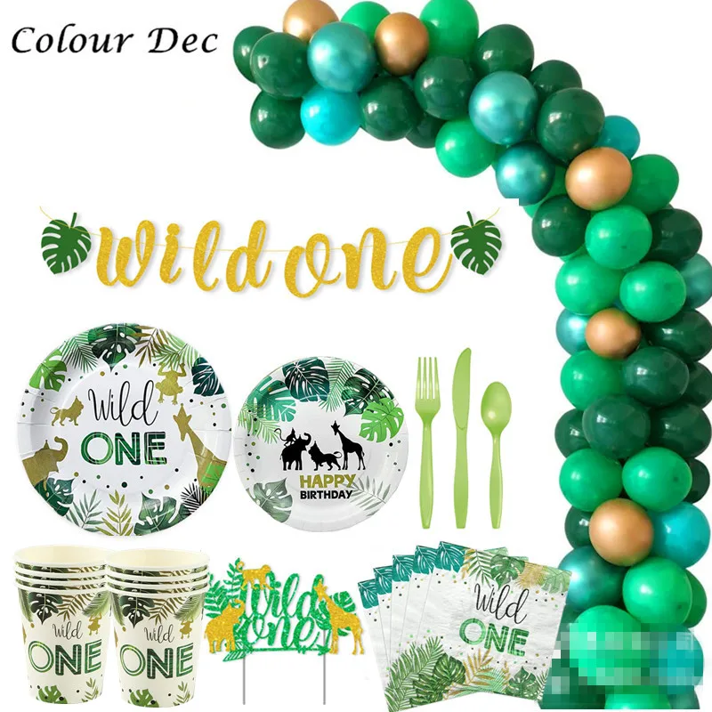 Набор одноразовой посуды для дня рождения, вечевечерние НКИ в джунглях, бумажная тарелка в джунглях, соломенная салфетка, декор для свадебной вечевечерние НКИ, детский воздушный шар