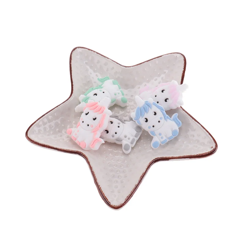 50 шт. силиконовые бусины для прорезывания зубов в виде единорога Силиконовые Детские Прорезыватели для прорезывания зубовСиликоновый жемчугБез BPA