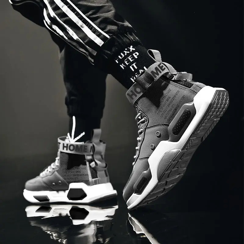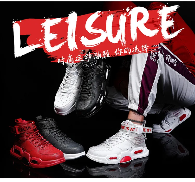 Мужские высокие модные кожаные кроссовки, трендовая удобная мужская повседневная обувь, уличная Нескользящая дышащая мужская обувь, 2020