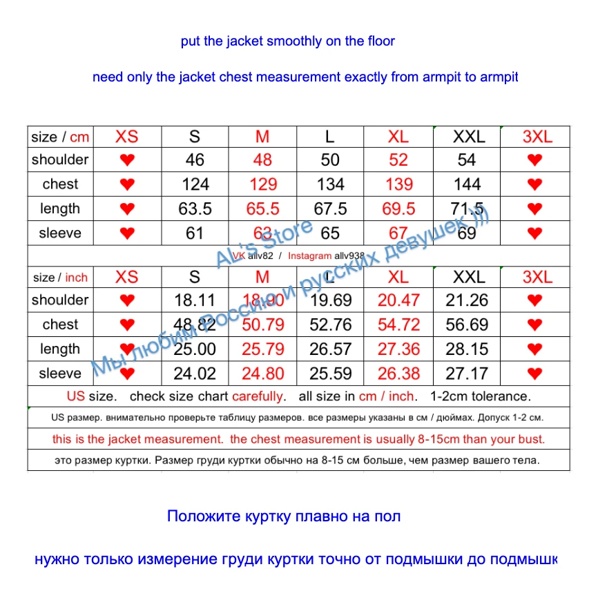 Пожалуйста, измерьте вашу куртку, как показано ниже: