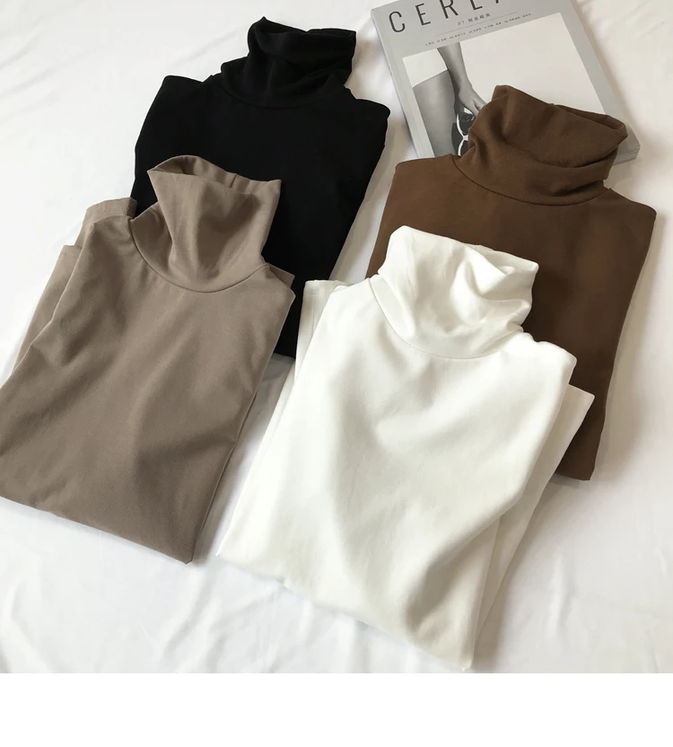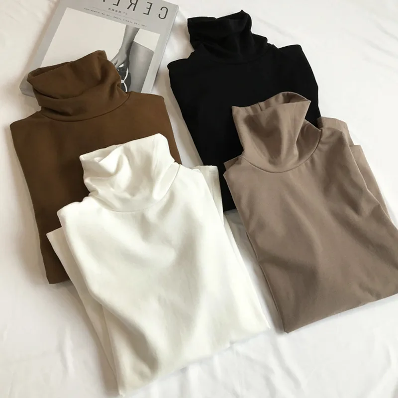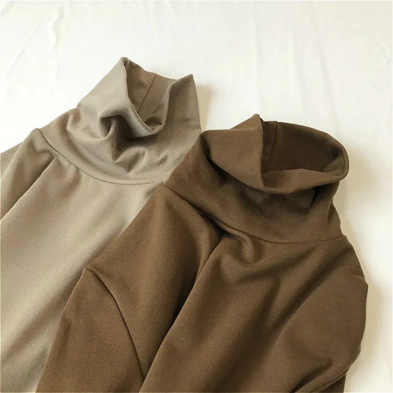 Футболка женская с длинным рукавом, однотонная водолазка в Корейском стиле, универсальная шикарная Весенняя модная повседневная одежда в стиле Ins для подростков, Ulzzang, на осень
