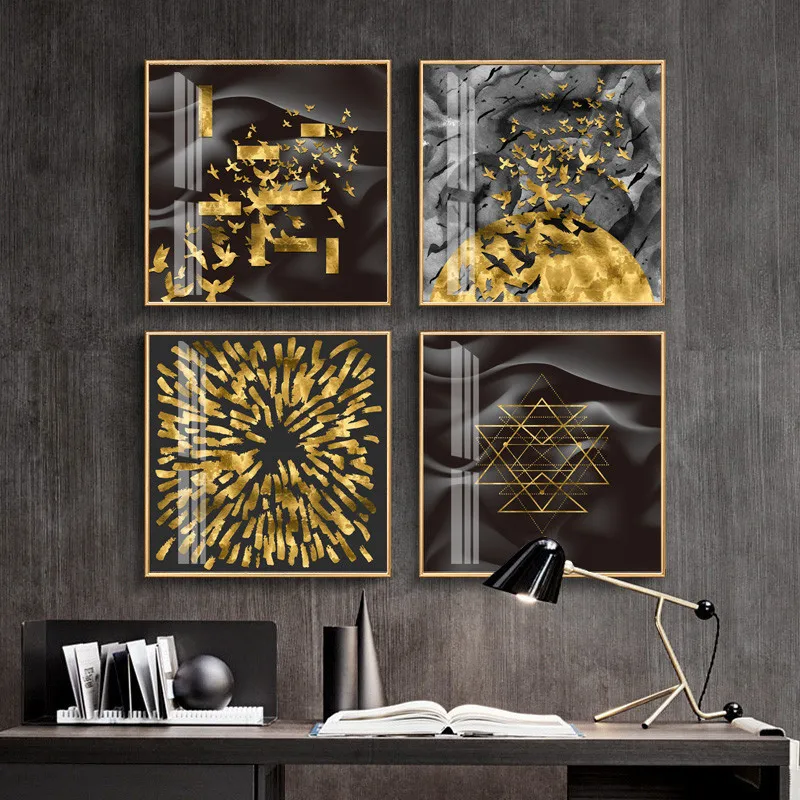 Минималистский Плакат геометрический Nordic с золотой бабочкой, настенные картины для гостиной, Картина на холсте, домашний декор, современный без рамы