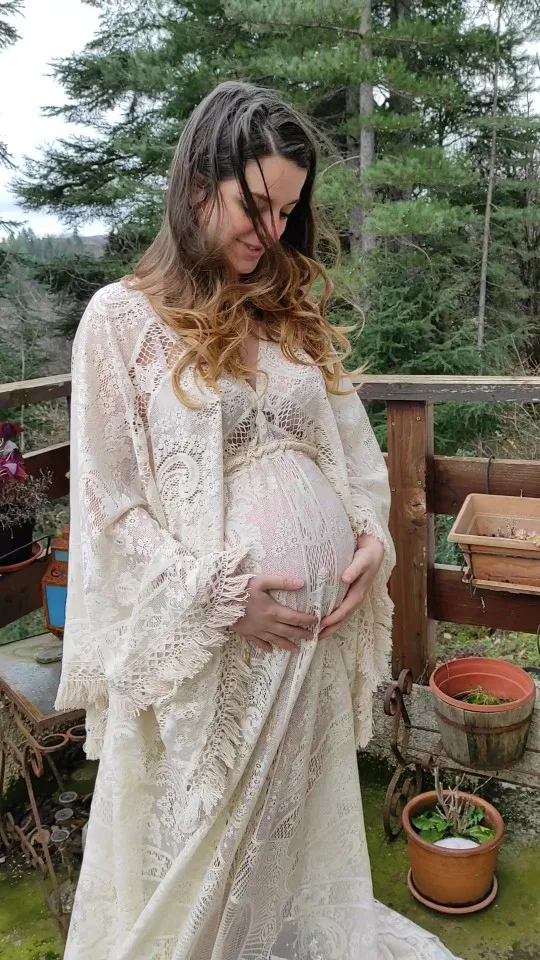 Кружевное платье для беременных Don Judy, с V-образным вырезом и длинным рукавом, в стиле бохо, праздничные платья, реквизит для фотосессии