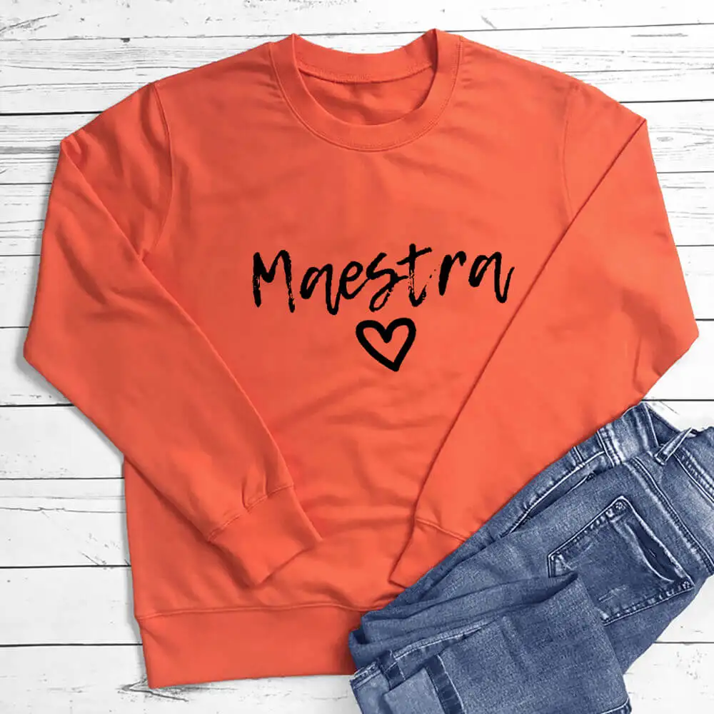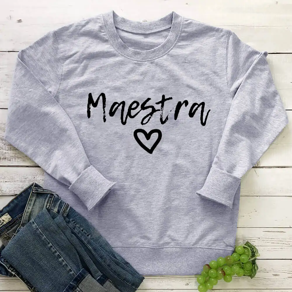 Женский свитшот с принтом в виде сердца Maestra, 100% хлопок, забавный повседневный топ с длинными рукавами и круглым вырезом, подарок для учителя
