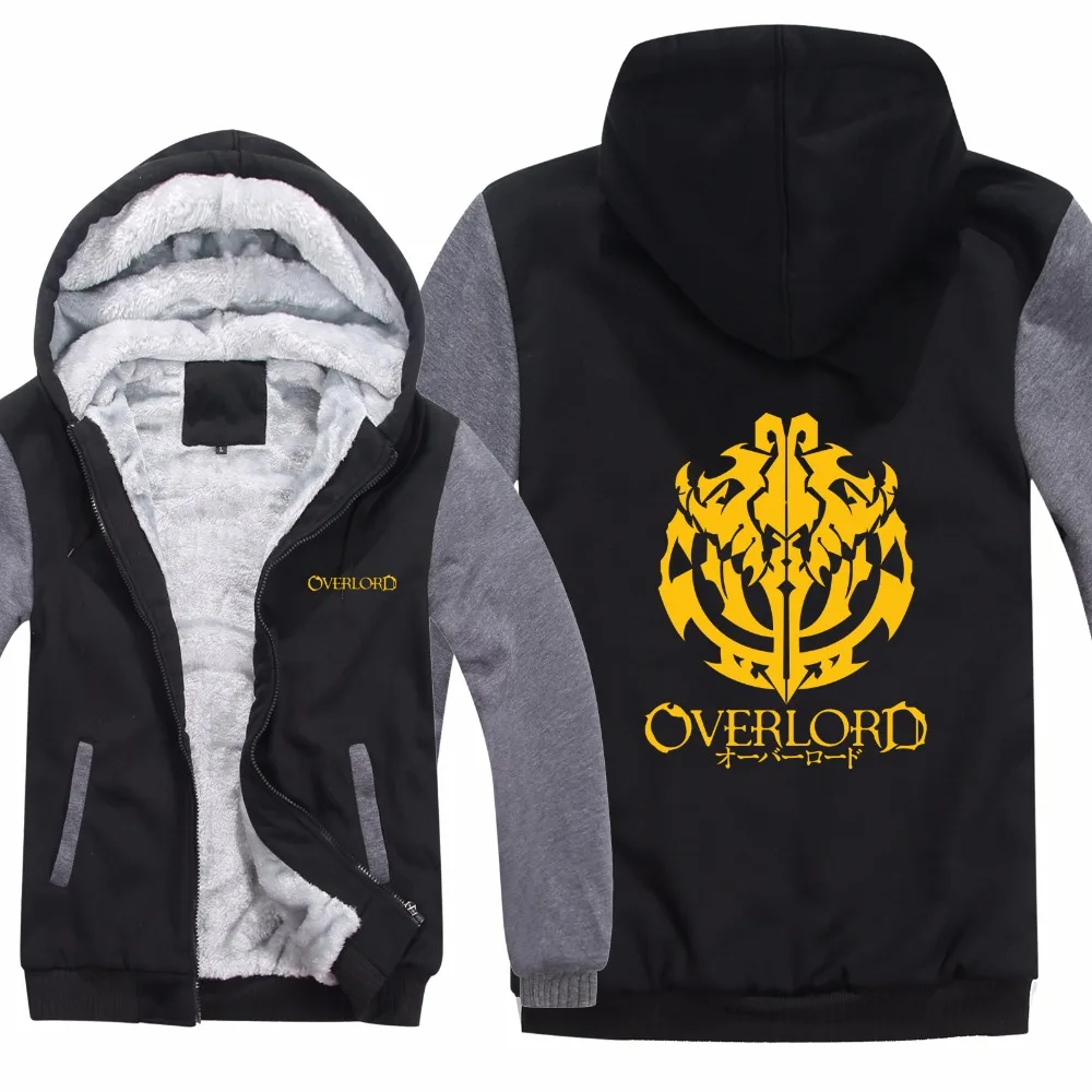Новый аниме Overlord толстовки Зимние флисовые толстовки с капюшоном пальто на теплом меху лайнер Мода Мультфильм Overlord куртка M-5XL