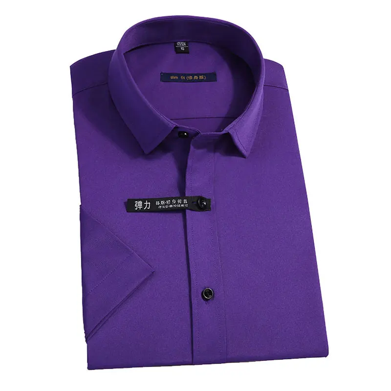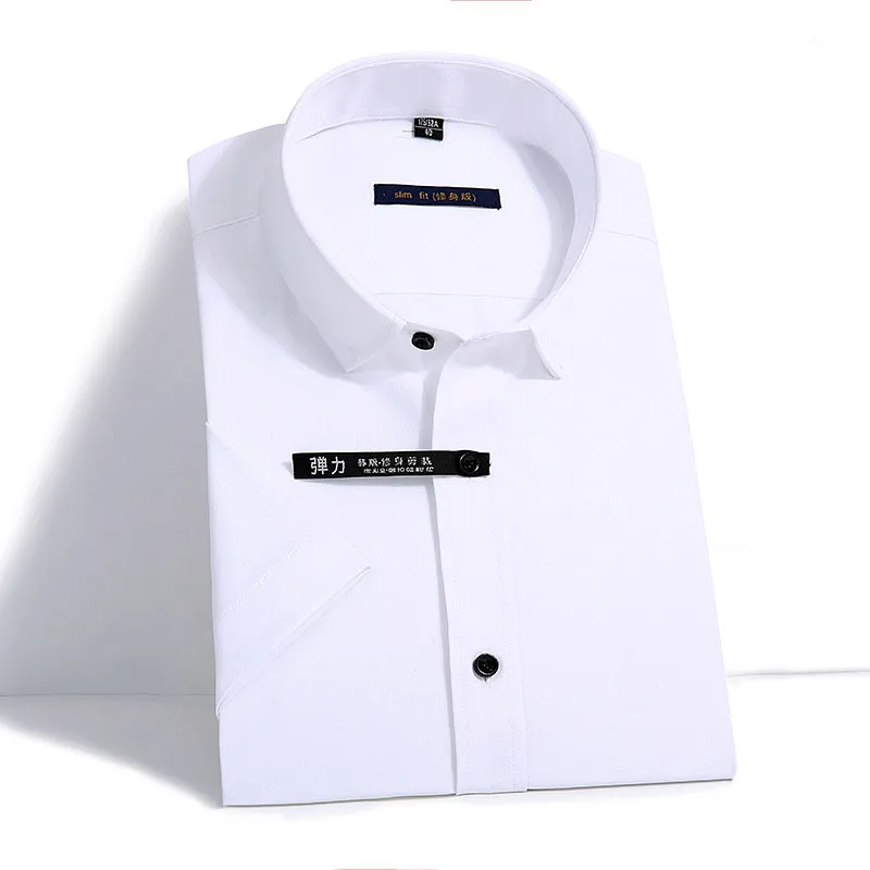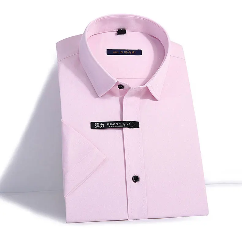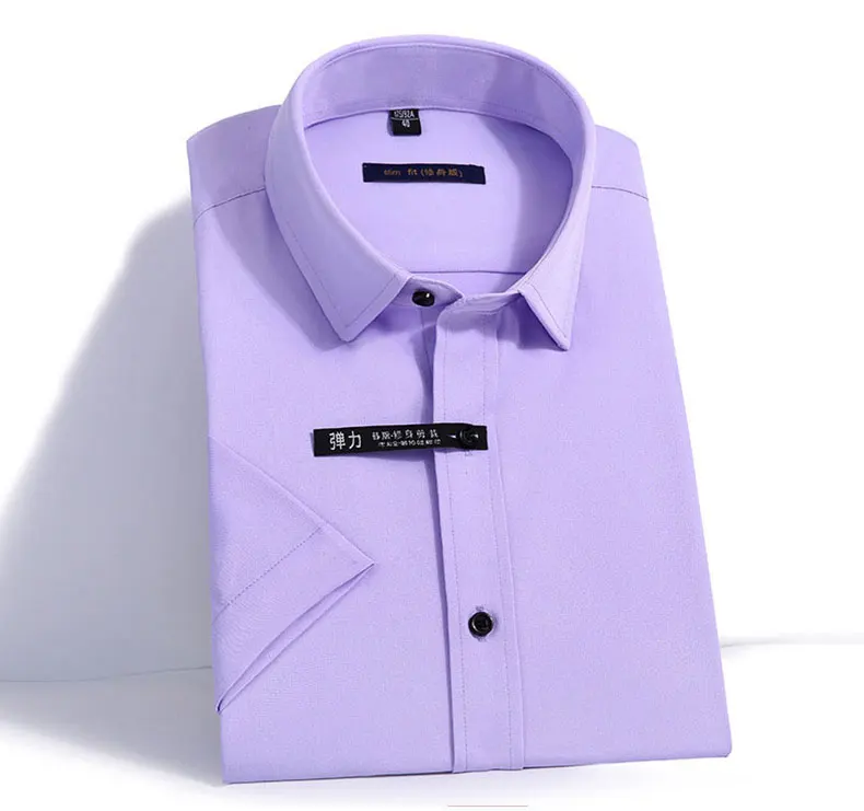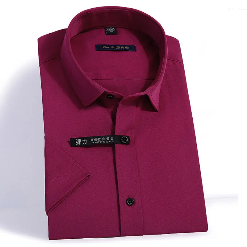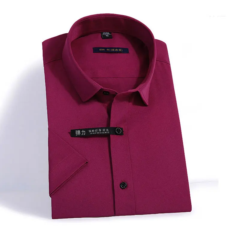 Мужская Однотонная рубашка из бамбукового волокна, мягкая тонкая эластичная формальная деловая рубашка с короткими рукавами, не требует глажки, лето 2019