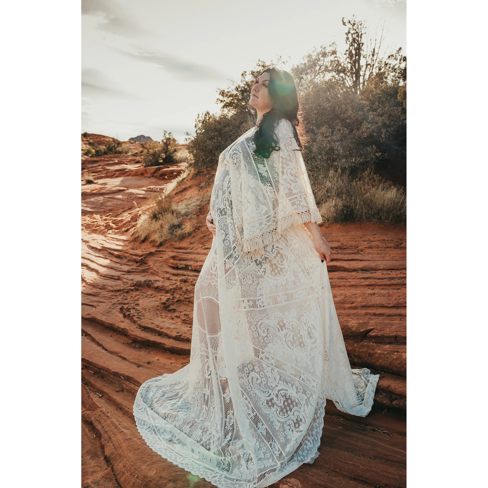 Лидер продаж! Костюм для беременных в стиле бохо с длинными рукавами-колокольчиками, кружевное платье для беременных, модная женская одежда для фотосъемки, платье для будущей мамы
