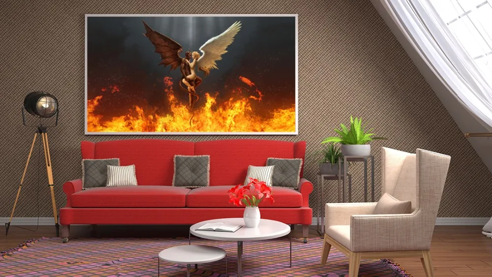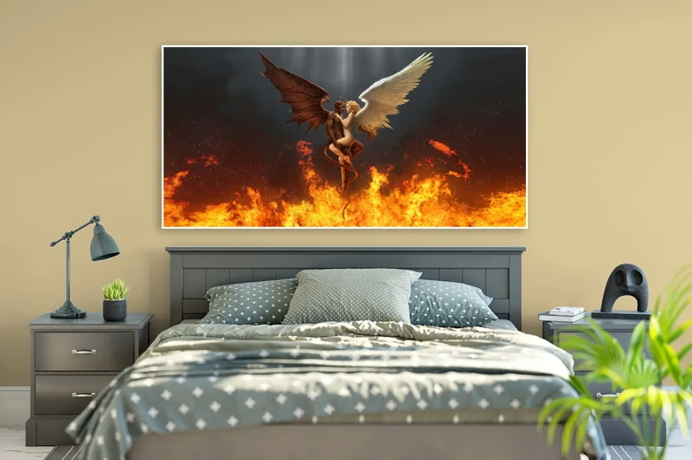 Дьявол и ангел любовь черное белое перо Крылья Ангела Холст Картина...