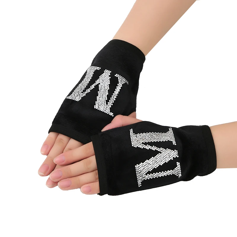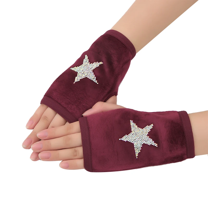 Короткие Модные женские перчатки с бриллиантами, теплые замшевые варежки с полупальцами для девочек, рождественские аксессуары, подарок