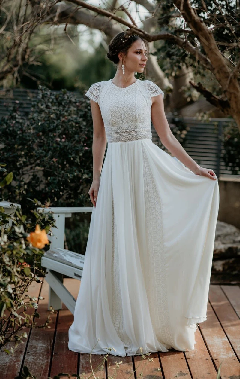 Винтажное богемное свадебное платье, кружевные Длинные платья невесты в стиле бохо с рукавами-крылышками, шифоновое пляжное свадебное платье, белое простое платье невесты
