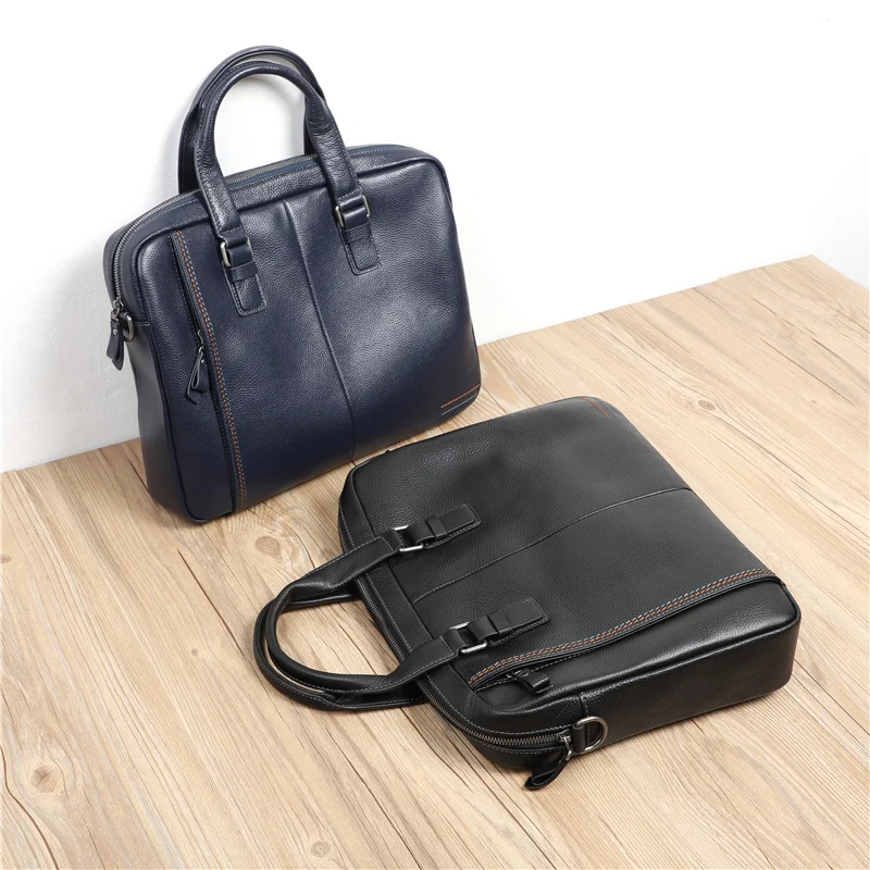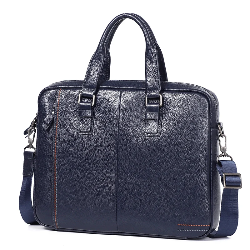 Модный мужской портфель из натуральной кожи 14 дюймов, сумка для ноутбука, мужская деловая сумка через плечо, сумки через плечо для мужчин, синие