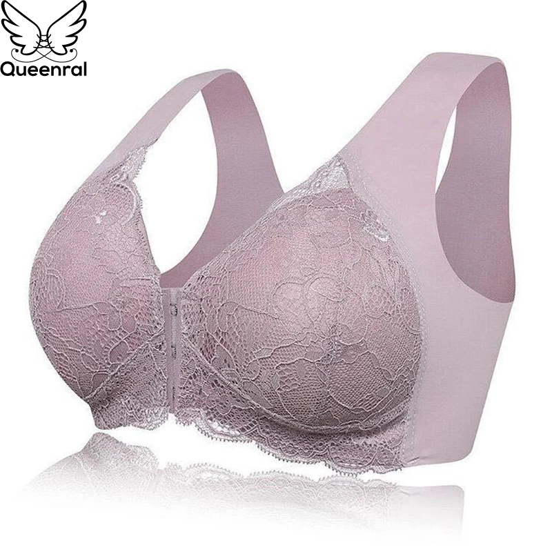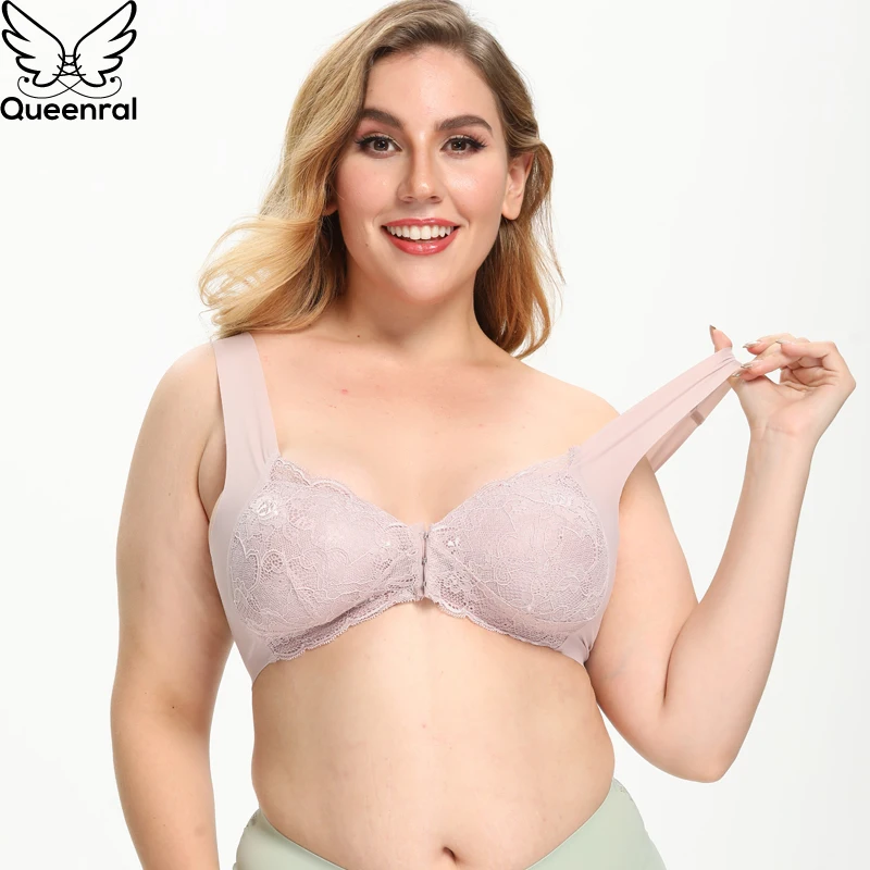 Женский кружевной бюстгальтер пуш-ап, бесшовный бюстгальтер без косточек с застежкой спереди, пикантное нижнее белье большого размера