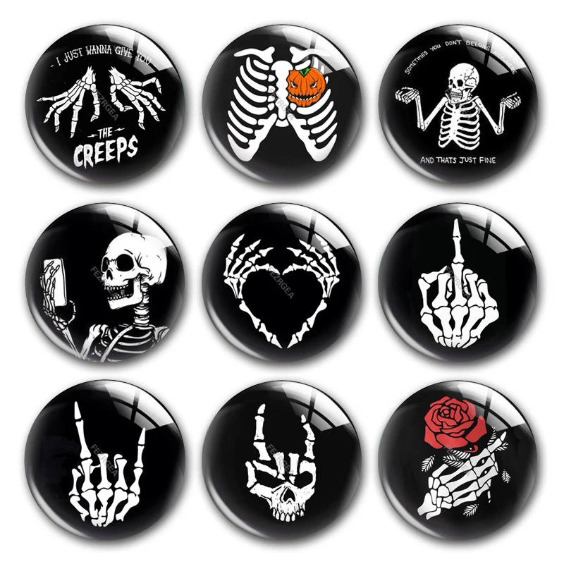 Ручная работа, Череп, летучая мышь, Хэллоуин, вечерние, розовое сердце, круглые фото, Стеклянные Кабошоны, демонстрация, плоская задняя часть, сделай сам, ювелирное изделие, фурнитура для аксессуаров