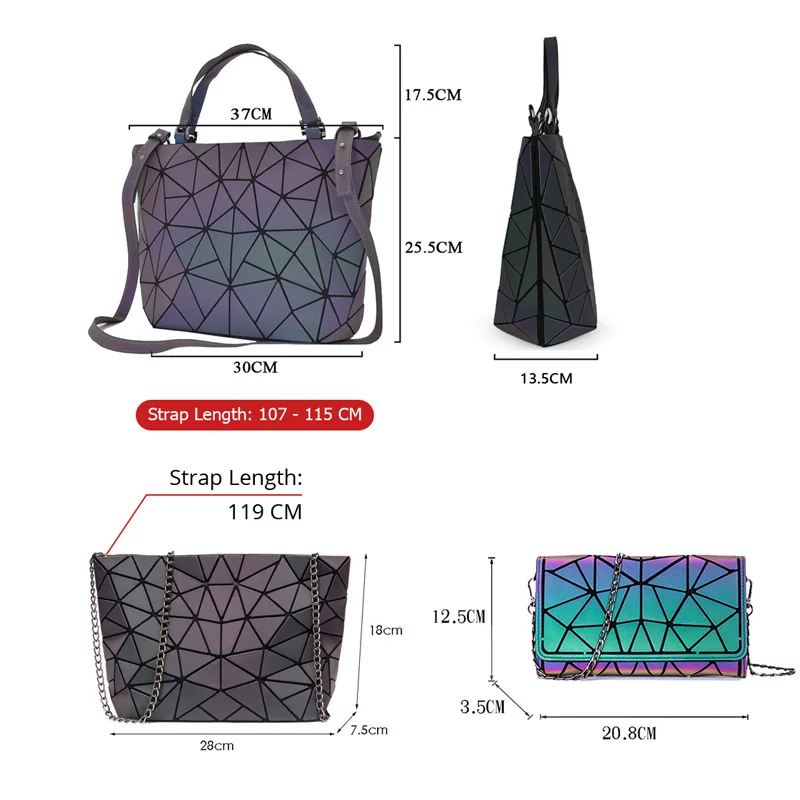 Комплект женских сумок на плечо из 3 предметов, складная светящаяся...