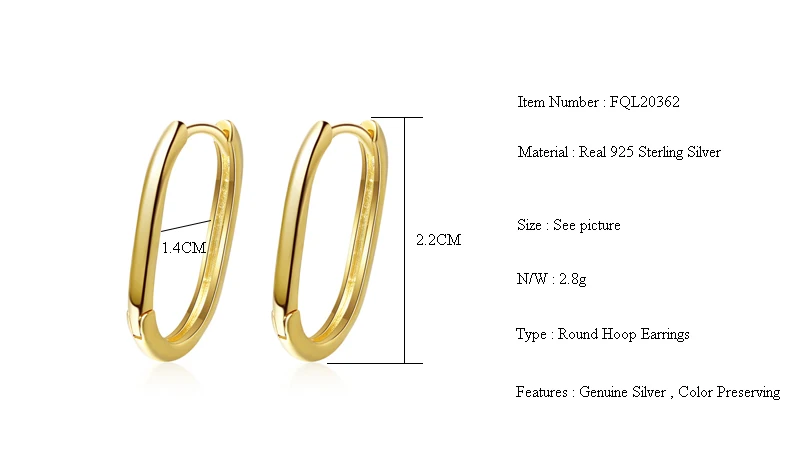 Женские круглые серьги-кольца Fanqieliu, из стерлингового серебра 925 пробы золотого цвета, FQL20362
