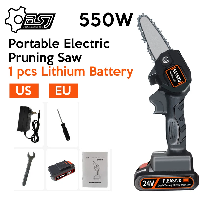 Портативная Электрическая цепная пила, 24 В, деревообрабатывающие электрические пилы, садовая каротажная мини-пила, литиевая батарея