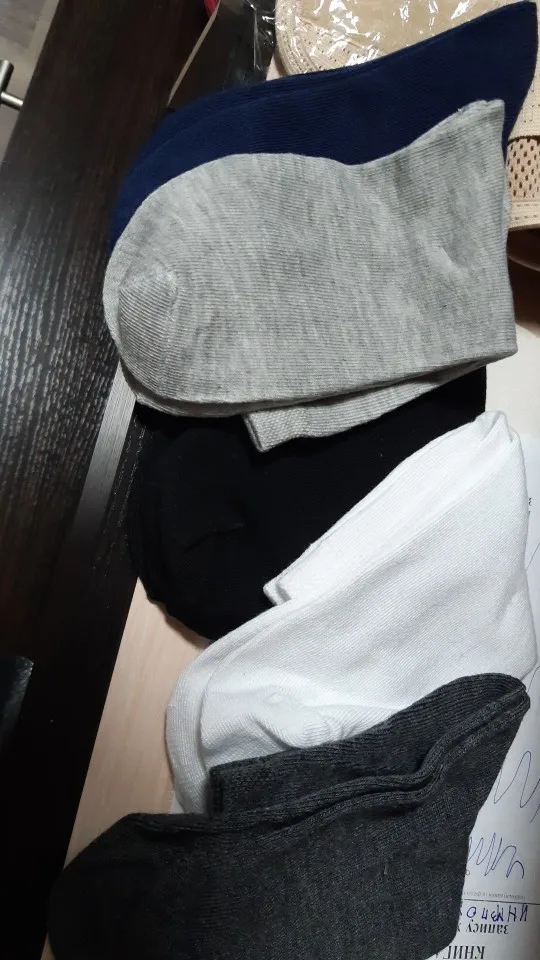 Носки, как раз, для зимы в городе - достаточно плотые. Хорошо прошиты, торчащих ниток почти нет. На свой размер ноги 42 (а современная обувь мне подходит 43 размера) взял размер продавца "43-48" (и не прогадал). На ноге носки сидят плотно, как раз на 42. Так что, носки - маломерки. Размер продавца "43-48" соответствует российским ногам, примерно, 41-43 размера. За 5 пар заплатил 222 руб. 3 коп. (стоимость лота 350р. 44к. - {часть купона Aliexpress} 128р. 41к.) Доставка меньше месяца до Саратова.