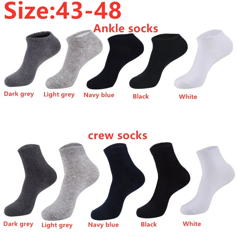 Носки мужские короткие, однотонные, черные, белые, 5 пар