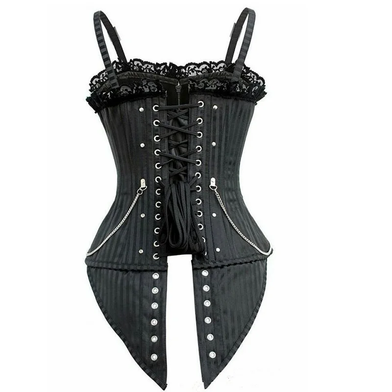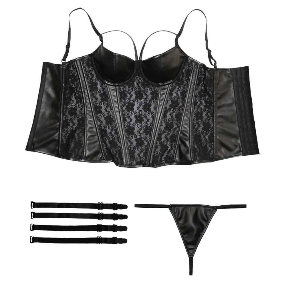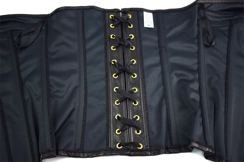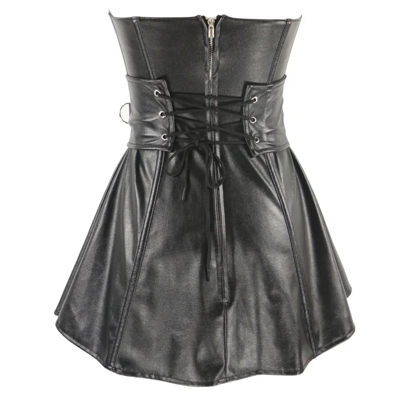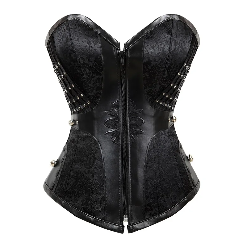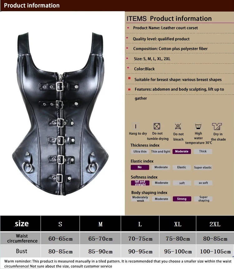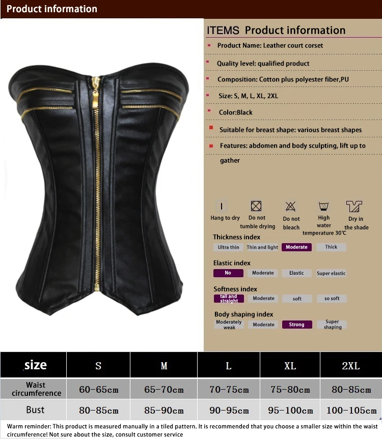 Привлекательный кожаный корсет с косточками, с металлическими косточками, черный, на молнии