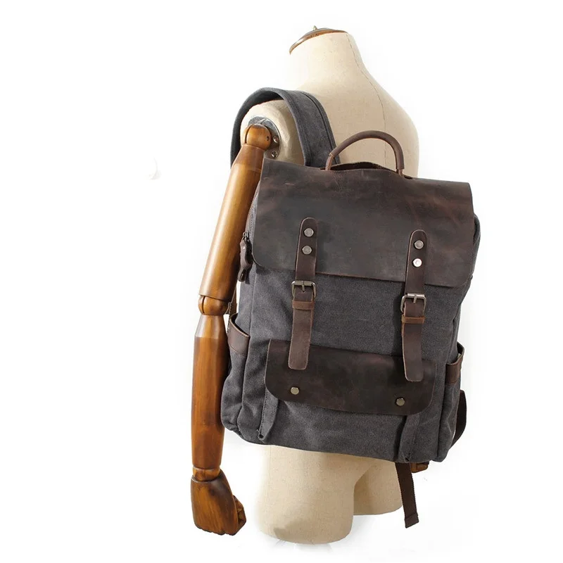 Классический винтажный холщовый рюкзак для мужчин, многофункциональные школьные ранцы из кожи, нейтральный портативный износостойкий рюкзак для ноутбука