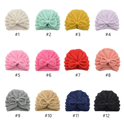 Шапка-тюрбан для мальчиков и девочек, вязаная, зимняя, ярких цветов, для новорожденных шапка