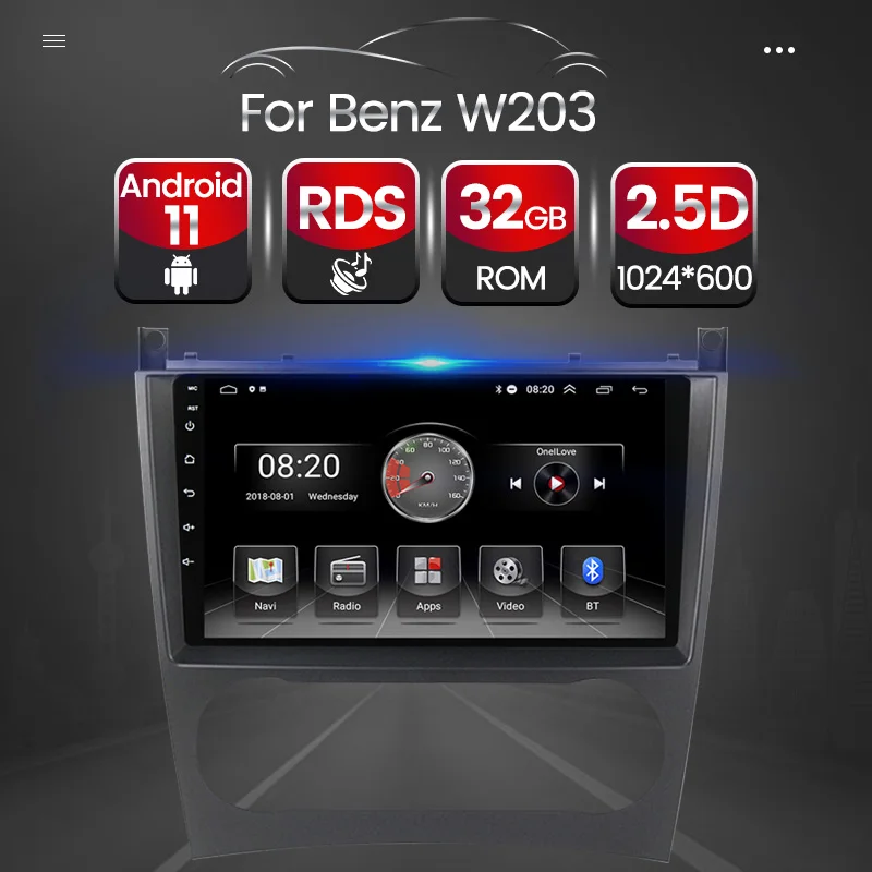 Автомобильный радиоприемник Android11 для Mercedes Benz W203 W209 W219 A-Class A160 C-Class C180 C200 CLK200 C230, видеоплеер, GPS-навигация