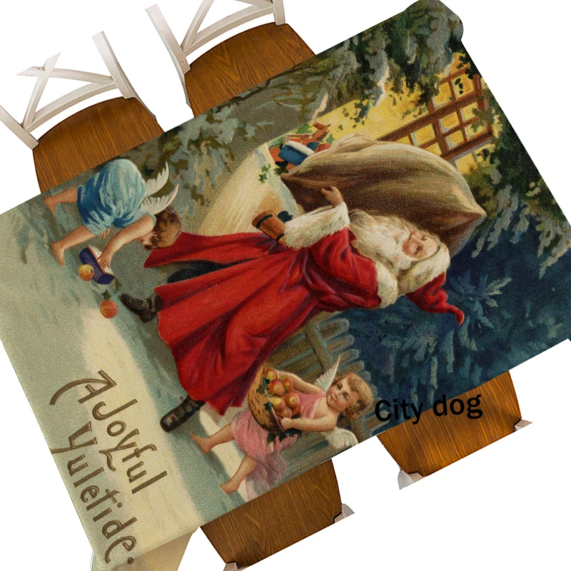 Рождественская картина маслом, Санта-Клаус, ангел, девушка, персонаж, водонепроницаемая скатерть, кофейный столик, декоративная Обложка