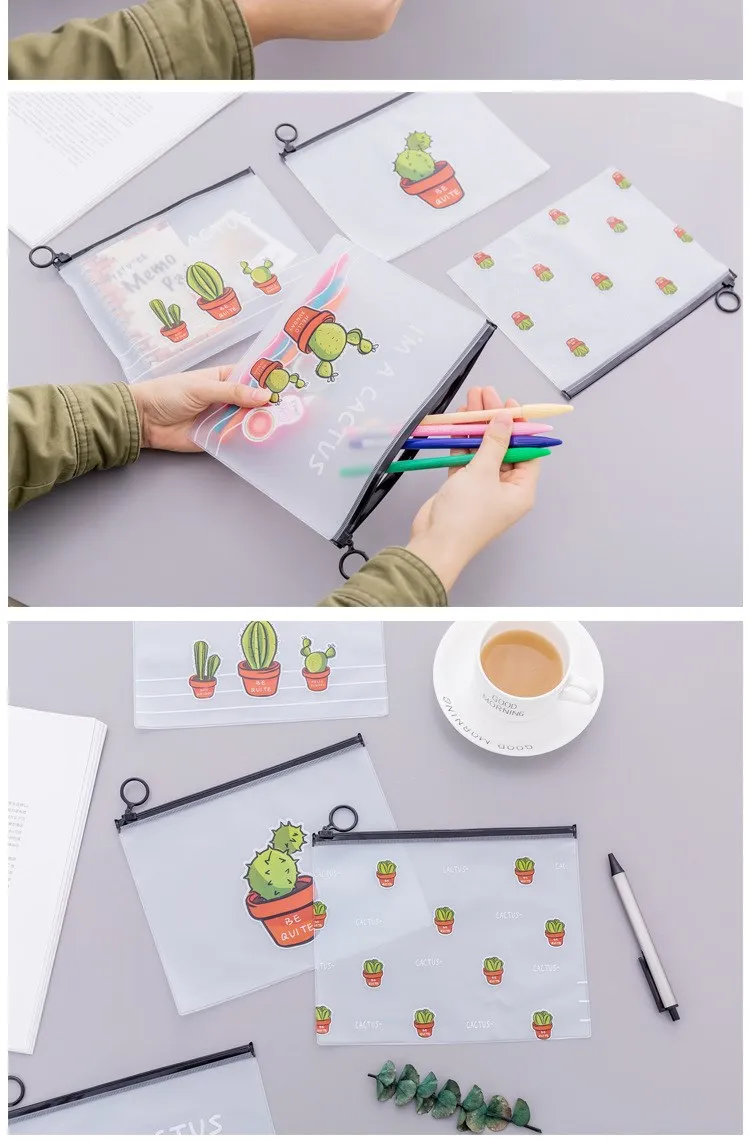 Прозрачный чехол для карандашей с милым единорогом и КАКТУСОМ, папка для файлов, школьные принадлежности, Канцтовары для офиса, оптовая продажа