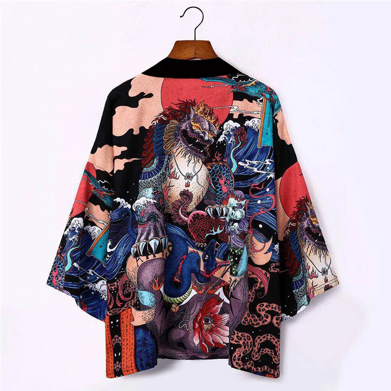 Кимоно в японском стиле Харадзюку с принтом Восемь голов, традицион...