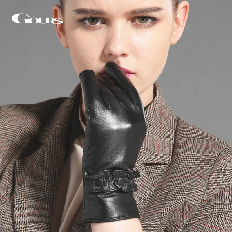 Женские перчатки Gours, черные перчатки из натуральной козьей кожи,...