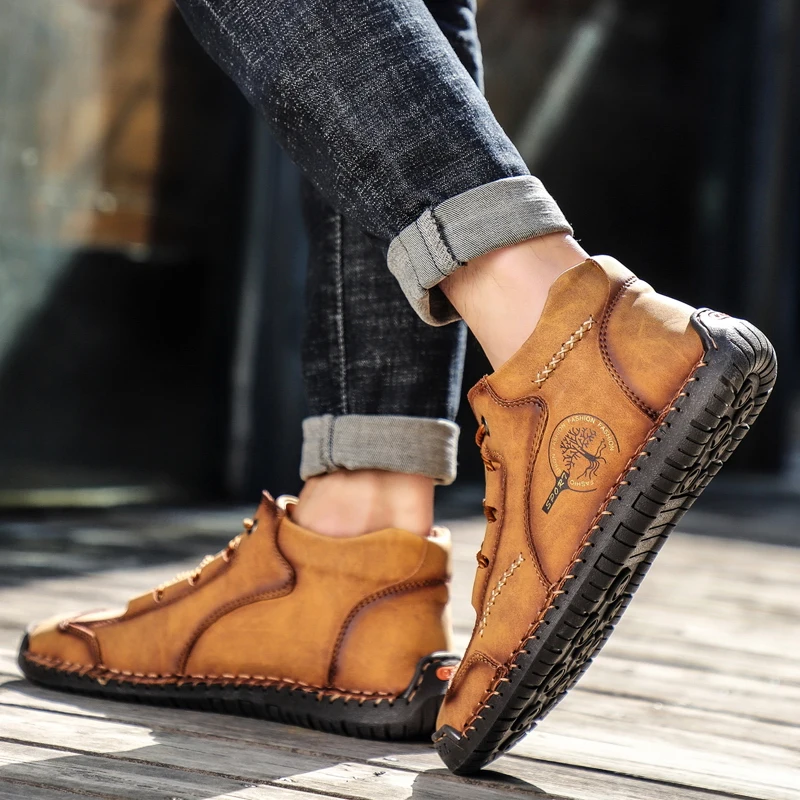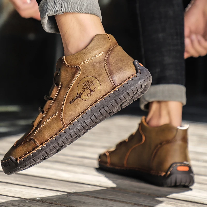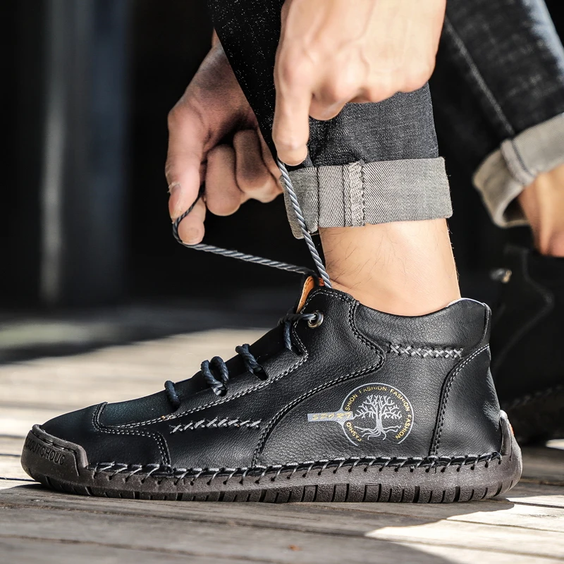 Зимние теплые ботинки, мужские кожаные ботинки, водонепроницаемые ботильоны, модные теплые мужские ботинки на меху для снега, уличные мужские мотоциклетные ботинки