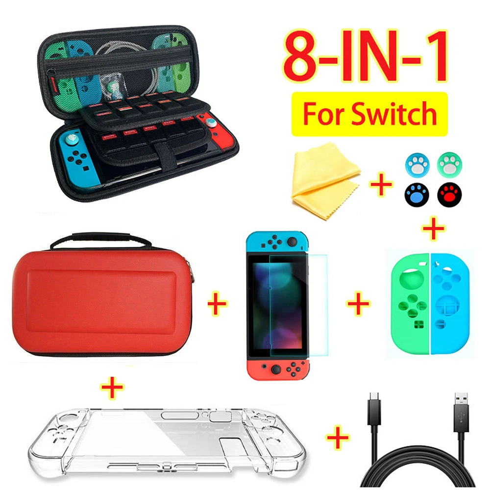 Набор игровых аксессуаров 8 в 1, черный, красный, синий для Nintendo Switch OLED, дорожная сумка для переноски, защита экрана, чехол, кабель для зарядки