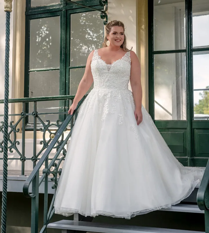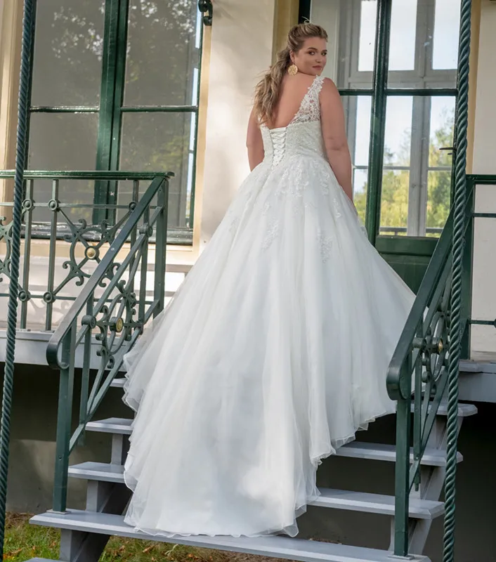 Размера плюс свадебное платье-трапеция с V-образным вырезом, элеган...