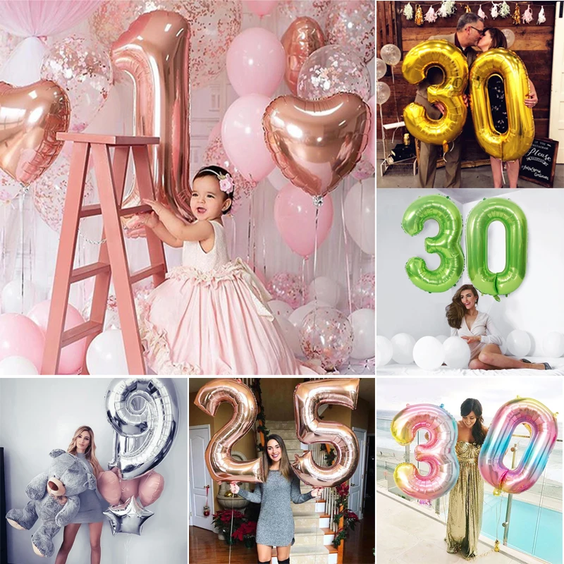 Большие воздушные шары, фольгированные шары в форме цифр 163240 дюймов, розовое золото серебро воздушные шары в форме цифр, украшение для дня рождения, вечеринки для будущей мамы