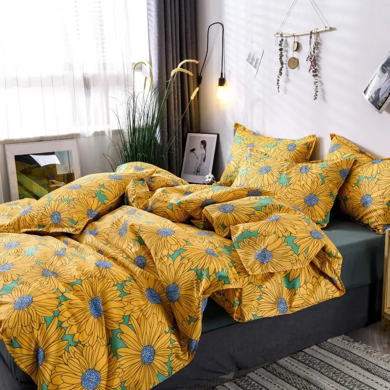 Комплект постельного белья J из 3 предметов с желтым пододеяльником в виде подсолнуха 220x240, комплект постельного белья с наволочкой, пододеяльник 200x200, простыня большого размера