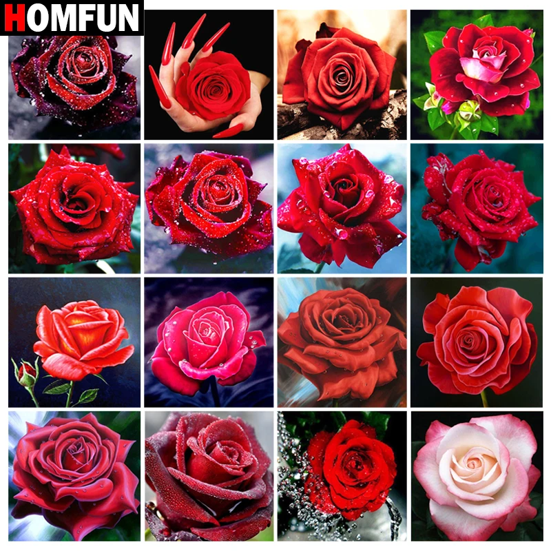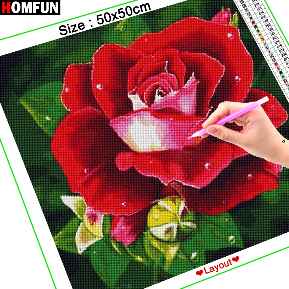 Картина для алмазной вышивки HOMFUN, алмазная 5D картина сделай сам с полными квадратнымикруглыми стразами, Красная роза, вышивка крестиком, домашний декор, подарок