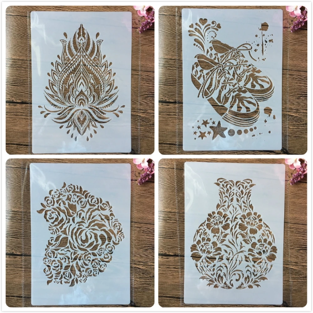 Трафареты для рисования, 4 шт., A4, 29 см, ваза, сердце, мандала, сделай сам, раскраска для скрапбукинга, тиснильный альбом
