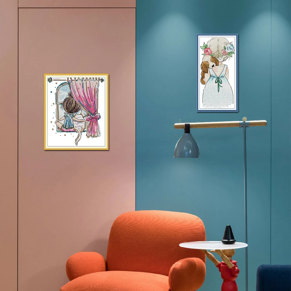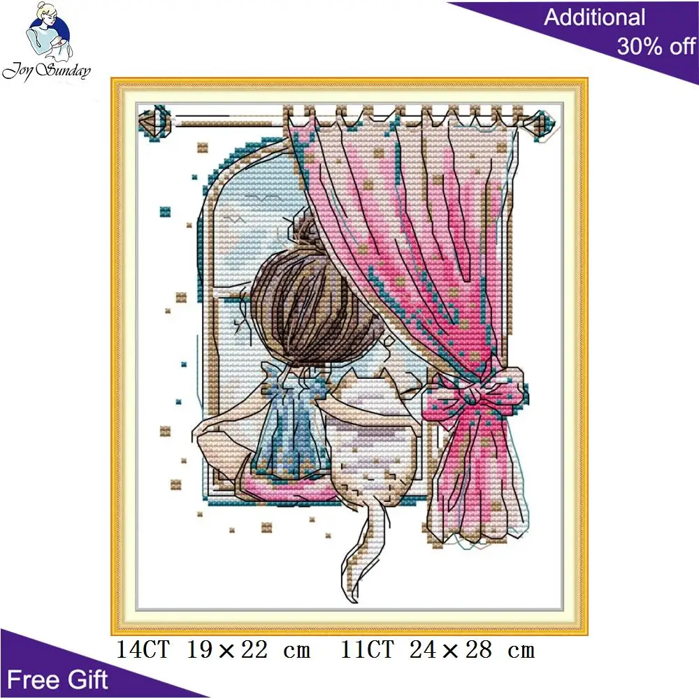 Joy Sunday, маленькая девочка, толстый кот и щенок, RA353, RA354, счетный и штампованный, милая девочка и домашнее украшение, наборы для вышивки крестиком