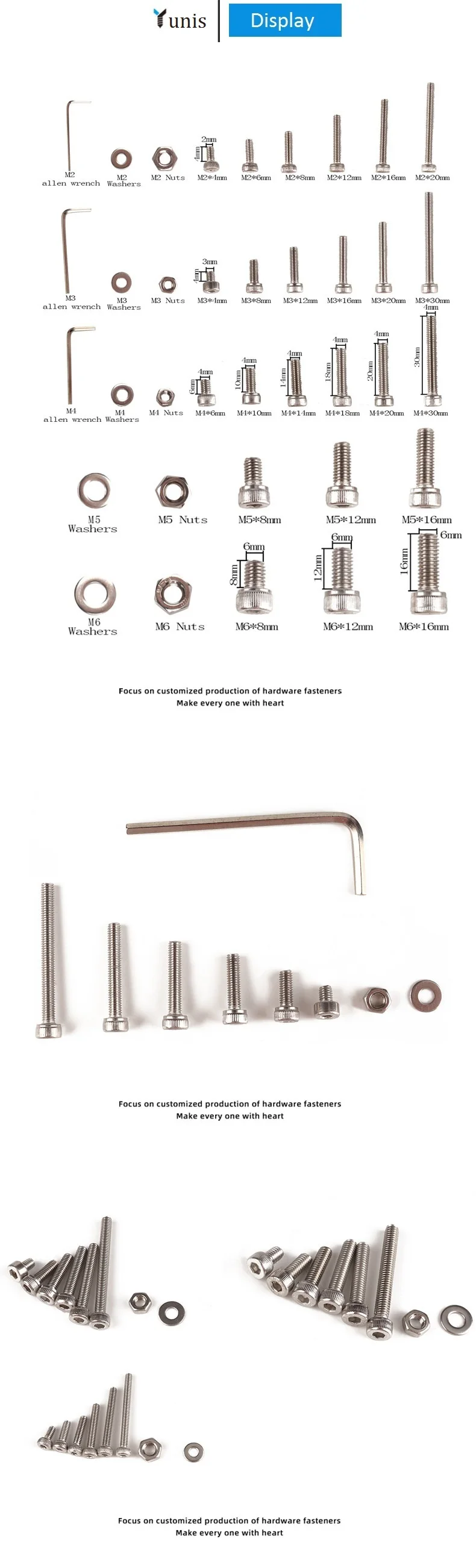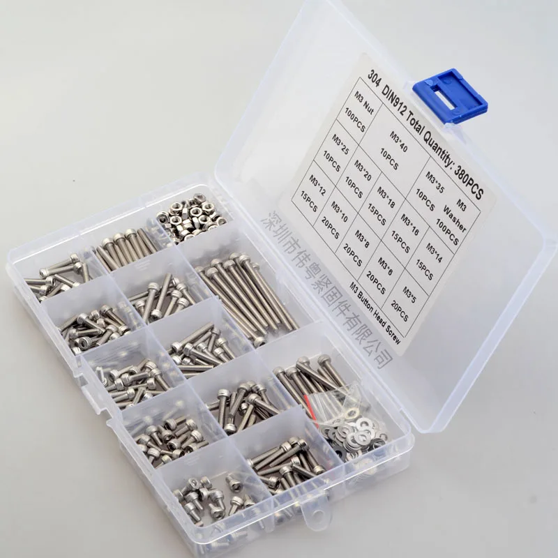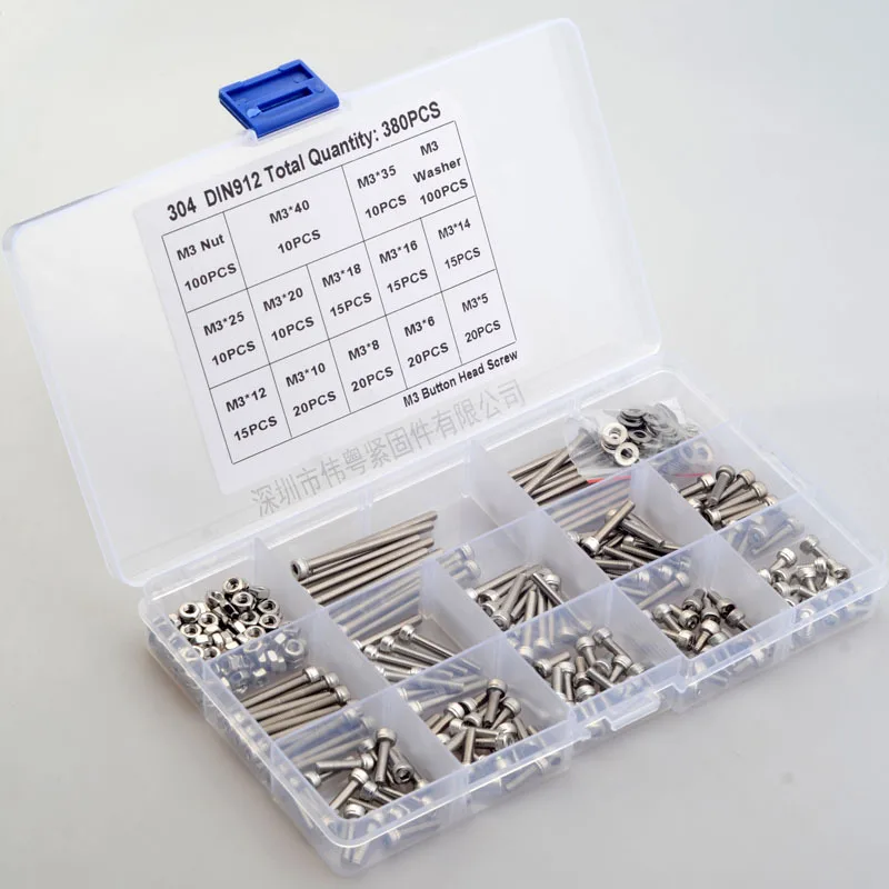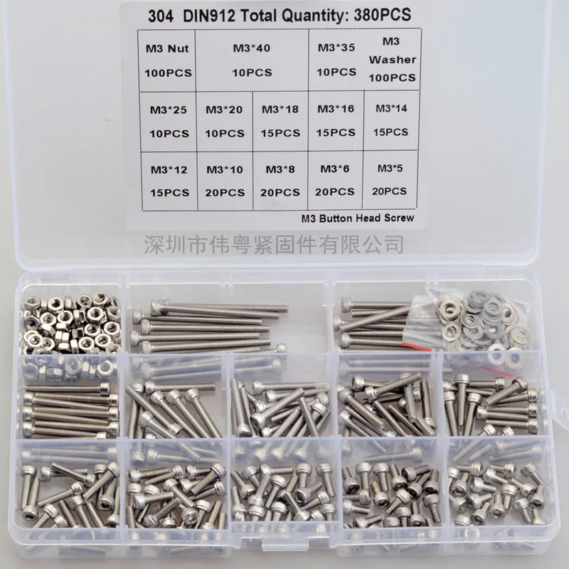 380 шт.лот M3 304 нержавеющая сталь Шестигранная головка колпачок винты шестигранные болты гайки и шайбы набор