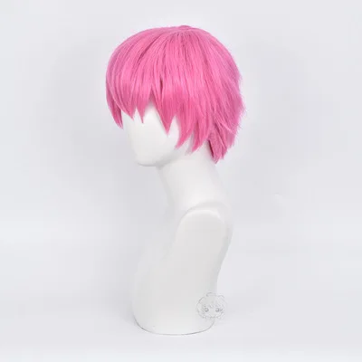 Парик мужской из аниме Саики кузуо, короткие розовые волосы для кос...